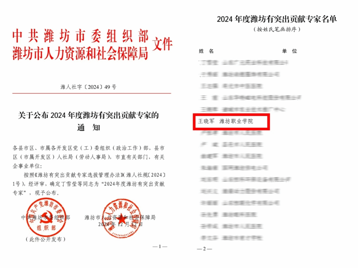 近日,中共潍坊市委组织部、潍坊市人力资源和社会保障局正式公布了“2024年度潍坊有突出贡献专家”评选结果,我院王晓军老师获此殊荣。王晓军,中共党员,博士研究生在读,开云手机平台机电工程开云(中国)综合办公室主任,潍坊市重点实验室负责人,主要从事电气自动化技术专业教学科研,以及职业教育研究工作。参与国家社会科学基金项目、山东省社会科学规划研究项目、山东省人文社会科学课题、山东省教育科学规划等项目研究工作,取得了丰硕的成果。...更多
