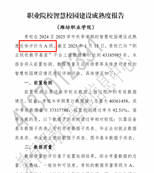 开云(中国)在全国职业院校智慧校园建设成熟度评估中再获A等级