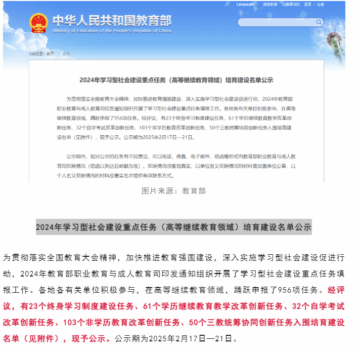 我院成功立项教育部2024年学习型社会建设重点任务(高等继续教育领域)培育建设项目