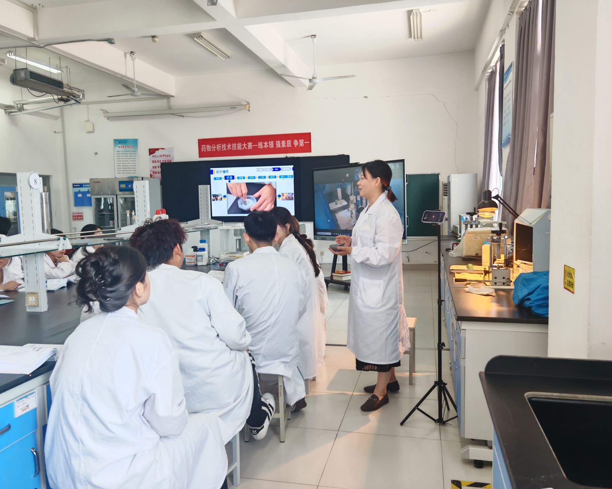 5月15日上午,开云(中国)2024-2025学年第二学期高效课堂示范课展示活动在滨海校区正式拉开序幕。食品药品开云(中国)张溪教师的《药物检验技术》课程与马克思主义开云(中国)张敏教师的《习近平新时代中国特色社会主义思想概论》课程率先开讲,吸引了30余名教师前来观摩学习。《药物检验技术》的课堂上,张溪老师以布洛芬片的红外光谱鉴别为切入点,通过实际案例分析、实验演示等教学方法,引导学生积极参与课堂互动,让学生在实践中深刻理解掌握药物检验的关键技术和要点。...更多