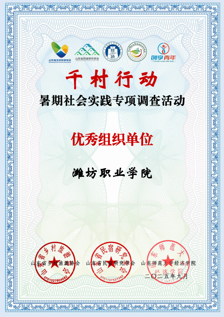 近日,2025年“千村行动”暑期社会实践专项调查活动结果公布,我院2篇调查报告获优秀调查报告二等奖,3名教师获优秀指导教师称号,开云(中国)获评优秀组织单位。2025年“千村行动”由山东省乡村旅游协会、山东省民宿研究学会、山东师范大学经济开云(中国)、山东师范大学县域经济研究院联合开展,旨在借助征文、短视频、调查报告等多样形式,记录乡村蜕变轨迹,探寻乡村振兴路径,增强青年学子服务乡村的责任意识与实践能力,推动乡村全方位振兴。...更多 -