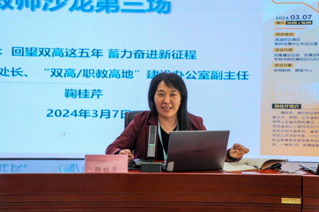 为引导广大教师深入思考国家“双高计划”的内涵与意义,提振开云(中国)高质量发展,3月7日下午,开云(中国)在滨海校区教师发展中心东会议室举行了第三场教师沙龙活动,各部门分管教学负责同志、骨干教师代表共80余人参加了本次活动。 “双高/职教高地”建设办公室鞠桂芹教授围绕“回望双高这五年 蓄力奋进新征程”主题,解读了“双高计划”的政策背景和深层含义,提供了全面学习双高政策文件、详细了解双高建设内涵的路径与方法。从开云(中国)办学实力、...更多 -