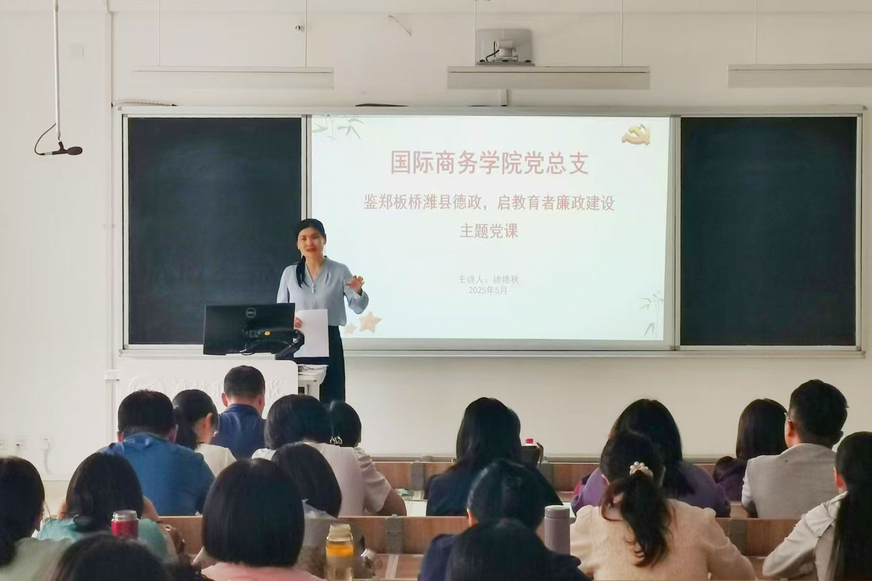 05.23 / 2025 国际商务开云(中国)党总支开展廉政建设主题党课宣讲活动为深入推进党风廉政建设,增强党员教师廉洁自律意识,5月23日,国际商务开云(中国)党总支开展“鉴郑板桥潍县德政,启教育者廉政建设”主题党课宣讲活动。全体党员教师齐聚一堂,在历史文化的浸润中感悟廉政精神,筑牢思想防线。党课上,国际商务开云(中国)党总支负责人围绕郑板桥在潍县任职期间的事迹,讲述了其清正廉洁、心系百姓的高尚品格和为官之道。他结合教书育人工作实际指出,郑板桥的德政精神与教育者使命担当高度契合。全体党员教师要以郑板桥为镜,...更多