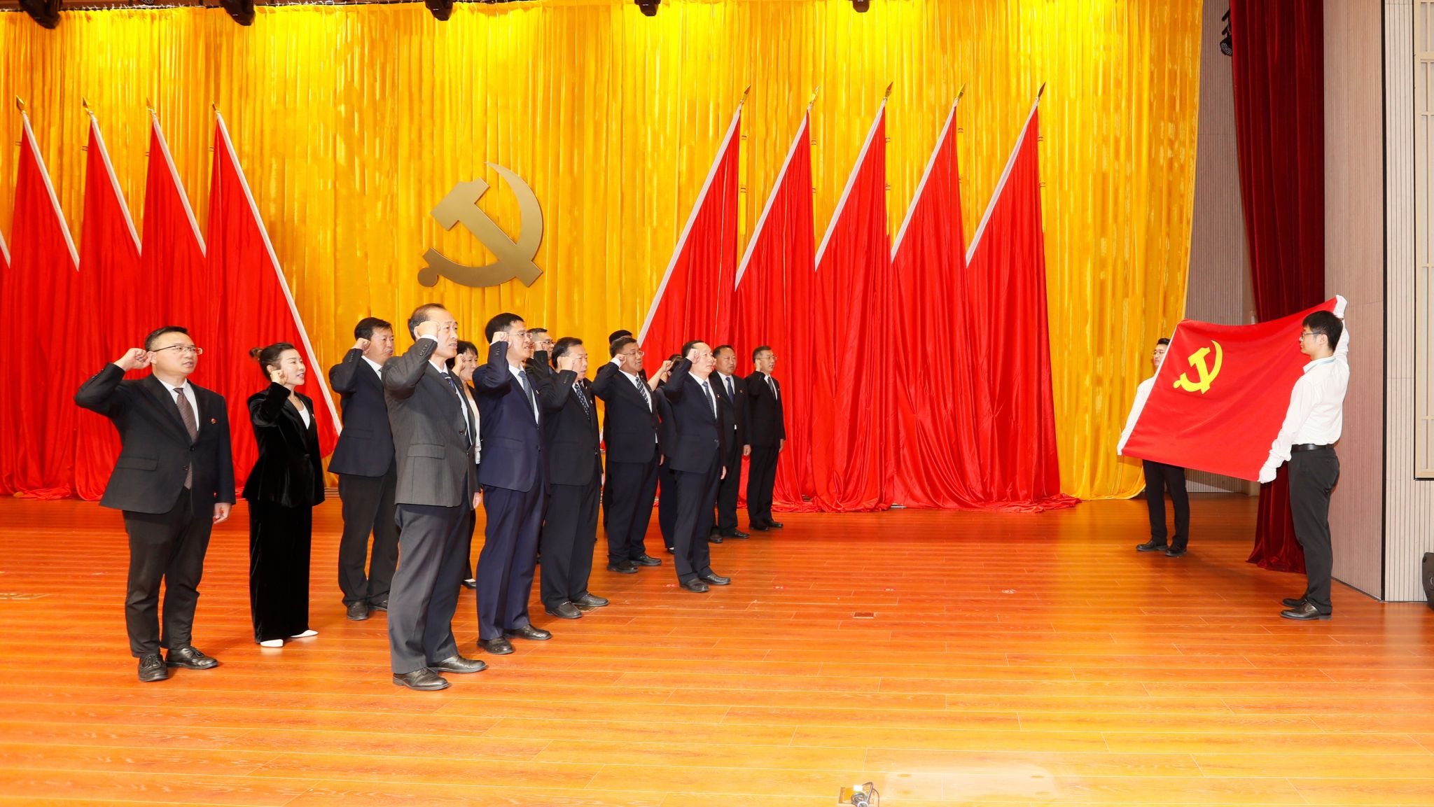 新一届党委班子和纪委班子面向党旗庄严宣誓