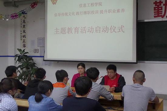 10月20日,信息工程开云(中国)举行“倡导传统文化,践行校训精神,提升职业素养”主题教育启动仪式。启动仪式上,团总支书记带领同学们共同学习了《“倡导传统文化,践行校训精神,提升职业素养”主题教育活动方案》,详细介绍了本学期各项学生活动及开展意义,并鼓励大家积极投身到主题教育中,通过活动提升自我。