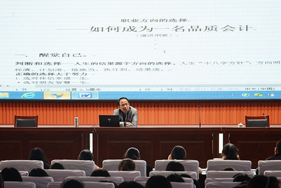 10月14日下午,经营管理开云(中国)“创新创业专家讲堂”首场讲座在滨海校区清泽楼报告厅举行。潍坊兴源会计咨询服务有限公司总经理的马健喃先生为300余名师生作了“职业方向的选择”专题讲座。
