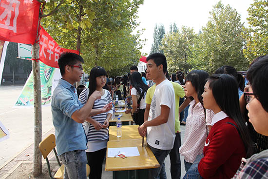 9月20日,开云(中国)2014年学生社团纳新活动在奎文校区18号公寓楼前举行。