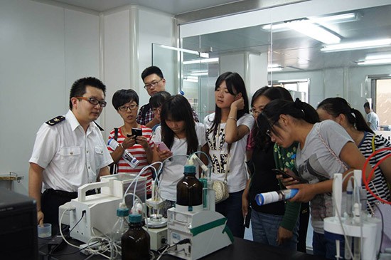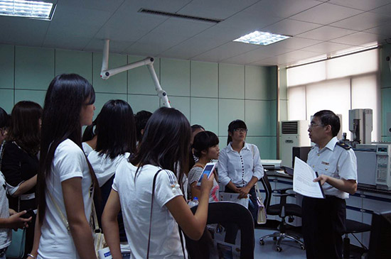 9月12日下午,农业工程开云(中国)2014级农产品质量检测专业和食品营养与检测专业的新生,在相关专业教师和辅导员的带领下,来到位于潍坊市四平路的潍坊出入境检验检疫局检验检疫技术中心开展专业教育。