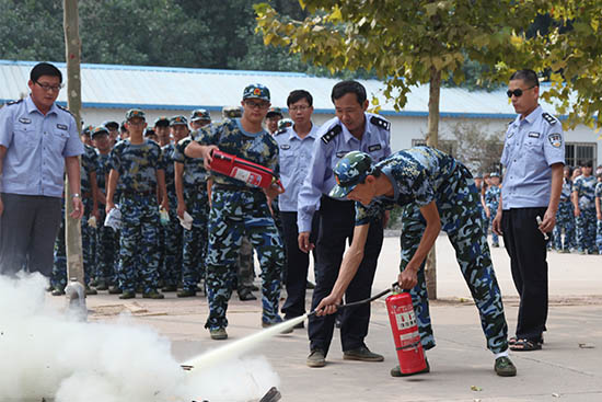 14点30分,随着演习总指挥一声令下,现场演习正式开始。模拟现场火险人员拉开发烟罐,警报器随之响起,同学们在辅导员、老师及宿舍管理人员的引导下,迅速向宿舍楼外撤离。大家捂着口鼻、采取蹲姿扶着墙壁有序地通过走廊、楼梯,快速疏散到宿舍楼外开阔的安全地带,整个演习时间短、疏散过程井然有序。安全保卫处相关人员向全体新生进行了消防知识讲解及灭火器使用方法的演示,并现场指导同学进行灭火演练。