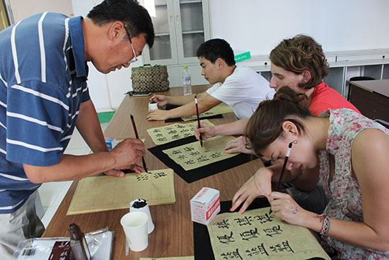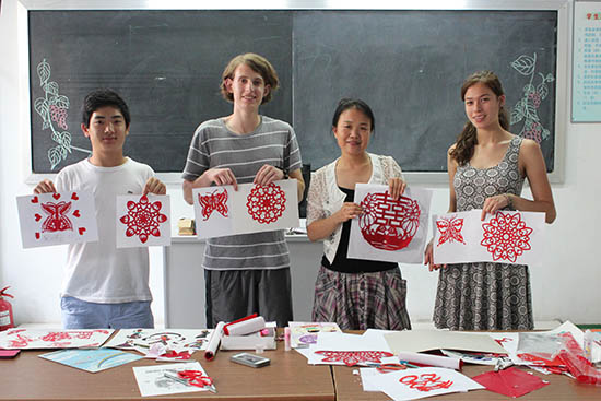 三名美国中学生自7月6日开始在我院进行了为期三周的汉语学习和中国传统文化体验活动。为了使本次研修活动内容充实,丰富多彩,从项目的策划、联络、主题的确定、课程设置到教学实施等各环节,国际交流与合作处及参与部门、教师进行了精心准备,达到了很好的效果。汉语学习及文化体验课程达到了近100学时,除汉语学习外,还设置了包括武术、毛笔字、硬笔书法、剪纸等内容的校内文化体验课,以及参观潍坊博物馆、风筝博物馆、滨海校区、杨家埠民俗文化古村、白浪河湿地公园、亚星集团、到农家菜园识别各种中国蔬菜、到华都颐年养老院进行义工活动等丰富多彩的校外体验及考察活动。还游览了闻名海外的五岳之尊泰山和儒家文化的发源地曲阜。这些活动让三名洋学生生动真实地学习了汉语,充分体验了中国文化和潍坊的魅力。