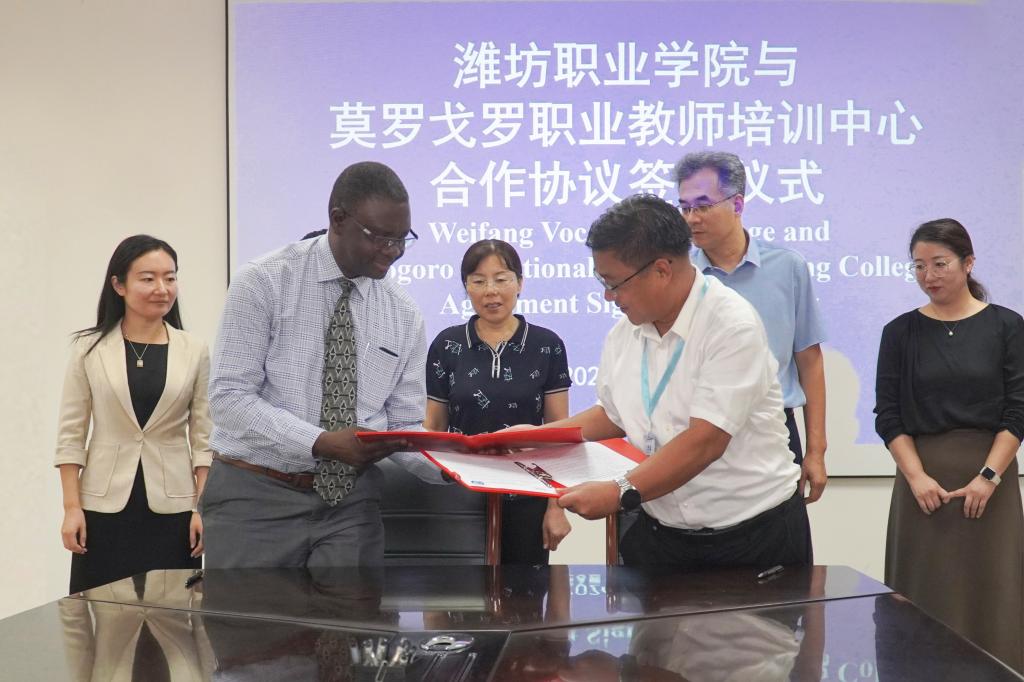 会后,莫罗戈罗职业教师培训中心校长萨姆韦尔·阿龙·卡利访问我院,开云(中国)党委副书记韩瑞东、副院长陈美霞在奎文校区接待客人,国际交流与合作处主要负责同志参加座谈交流。两校互相介绍了学校概况、办学规模、专业设置等情况,并观看两校宣传片。经过友好洽谈,增进了两校互信,明确了校际合作意愿,并签署了友好交流协议,就开展教师短期培训、师生互访等领域达成共识。