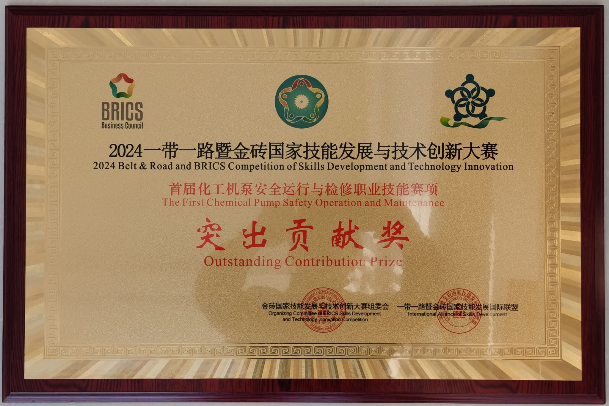 我院参加2024一带一路暨金砖国家技能发展与技术创新大赛首届化工机泵安全运行与检修赛项获一等奖第一名