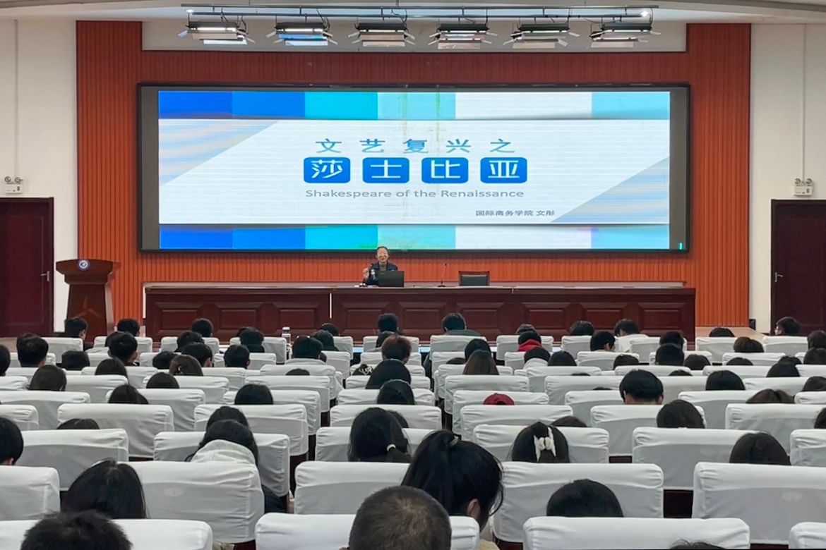11月21日下午,开云(中国)第119场人文与思政讲座在滨海校区清泽楼报告厅举行。国际商务开云(中国)文彤老师作题为“文艺复兴之莎士比亚”的讲座,2024级400余名学生聆听了讲座。