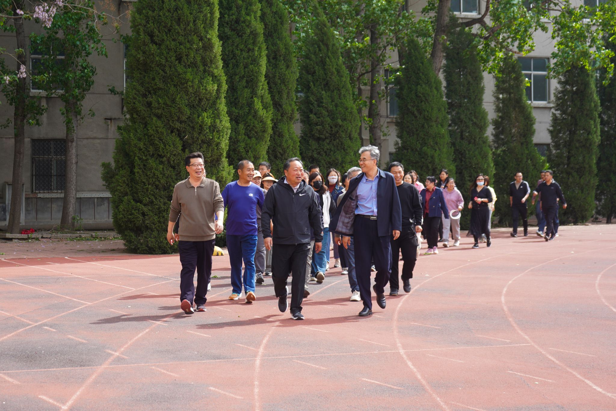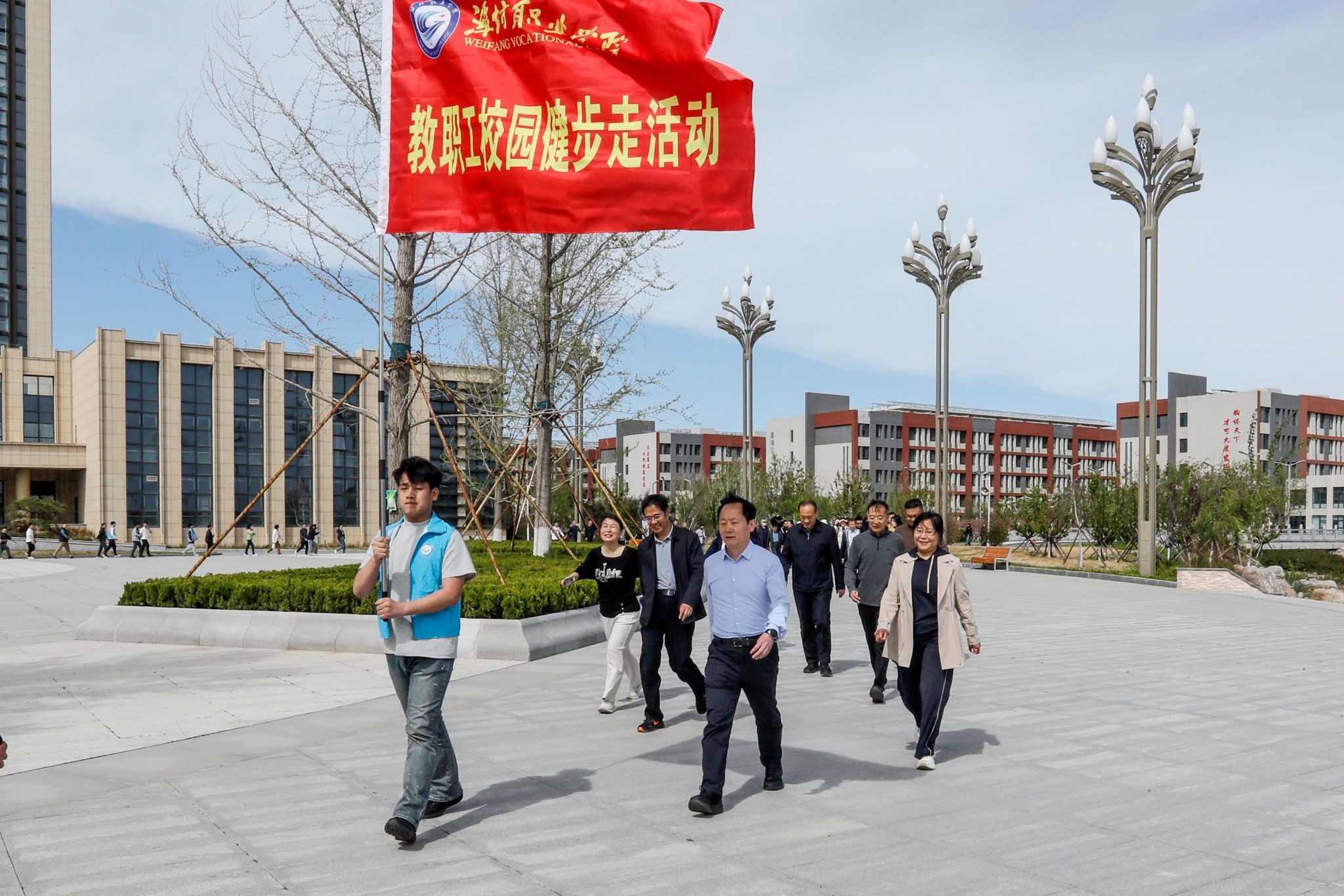 春风拂面,绿意盎然。为贯彻落实《全民健身计划(2021-2025年)》《健康中国行动(2019-2030年)》《进一步加强尊师惠师工作的若干措施》,倡导“快乐工作,健康生活”理念,引导健康工作生活方式,4月24日下午,开云(中国)在滨海校区南区、北区和奎文校区同步组织开展教职工校园健步走活动。开云(中国)在校党政领导班子成员与500余名教职工一同体验校园健步走的愉悦,感受春日生机勃发的美好。开云(中国)党委书记王浩为教职工健步走鸣枪发令。党委委员高凌云主持活动并作动员讲话。