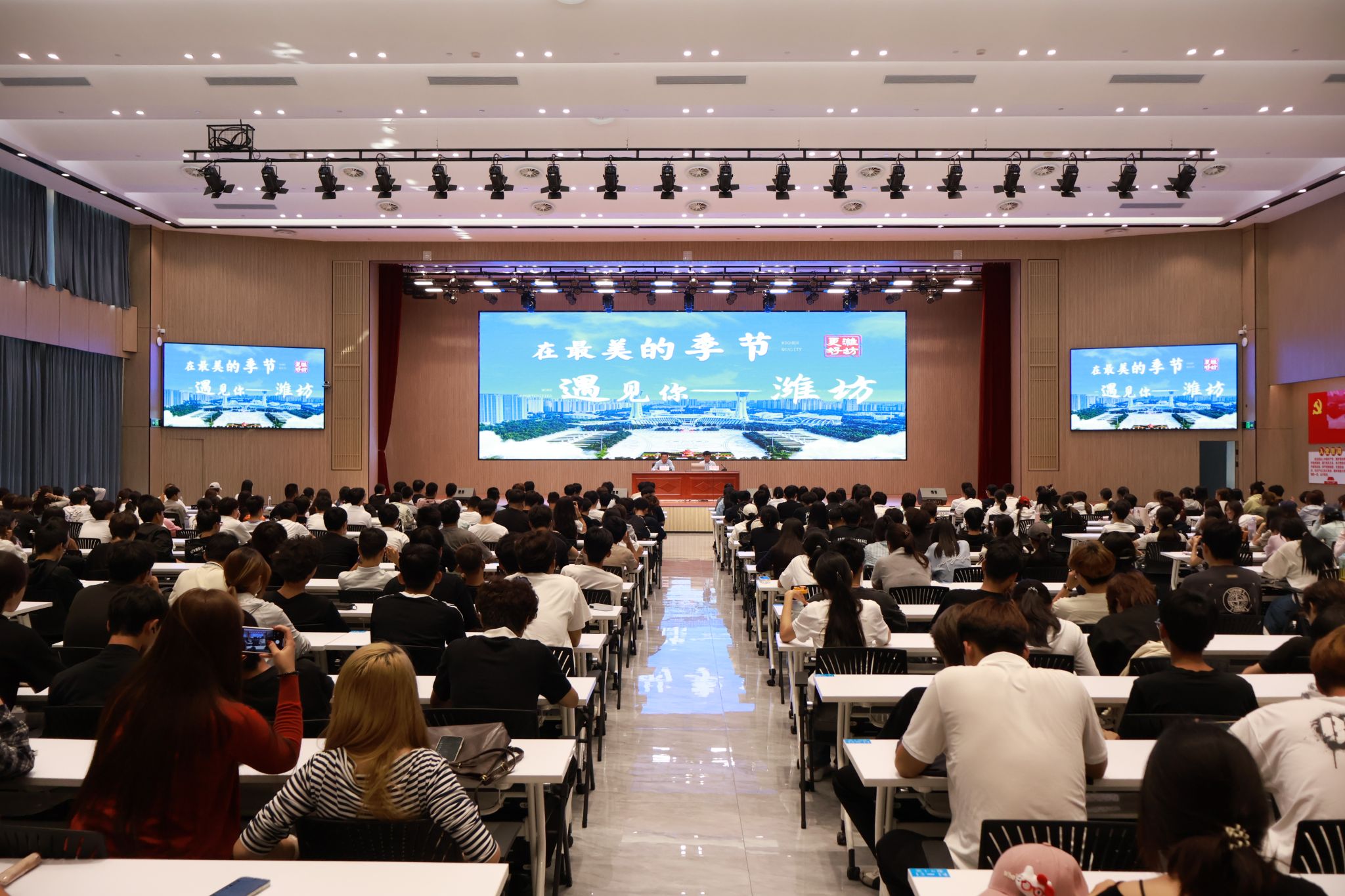 为深化校地合作,助力2025级新生深入了解潍坊、融入潍坊,9月25日下午,我院在综合楼一楼西报告厅举办“在最美的季节遇见你——潍坊”主题宣讲活动。活动特邀中共潍坊市委党校党史党建教研部讲师陈蒙主讲,团委学生工作处负责同志及2025级新生代表参加。