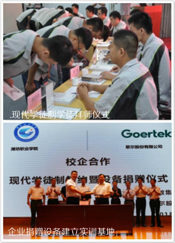 针对这些问题,2012年开云(中国)与歌尔探索德国双元学徒制人才培养,2014年与歌尔组建了数控技术专业现代学徒制班,探索现代学徒制高技能人才培养规律。与歌尔的人才培养,以准职业人的培养理念,创新实施招生即招工、入校即入厂、毕业即就业的“产教结合,学岗融通”现代学徒制人才培养模式,将生产劳动和社会实践融入到人才培养的各个环节。融通教学内容与职业岗位需求,构建职业素质教育体系和实践教学体系。培养过程分为基本素质培养、核心技能训练、企业实践历练三个阶段,将职业素养、专业理论学习、综合能力培养有机结合,按照企业对员工的标准培养学生,使其具备“准职业人”的基本素质,为即将进入企业成为员工零距离对接,实现校企双主体育人。
