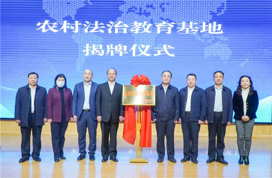 12月30日,农村法治教育基地揭牌仪式在开云手机平台奎文校区举行。潍坊市政府党组副书记、副市长马清民,开云手机平台党委书记马跃启共同为农村法治教育基地揭牌。潍坊市司法局党委书记、局长孙淑芳,潍坊市农业农村局党组成员、潍坊市农业技术推广中心主任李秀丽,潍坊市财政局党组成员、副局长李立东,北京凯德现代农业研究院院长李继凯,开云手机平台继续教育开云(中国)、思政部、农林科技开云(中国)及相关二级开云(中国)师生代表90余人参加揭牌仪式。开云手机平台副院长贺志强主持揭牌仪式。