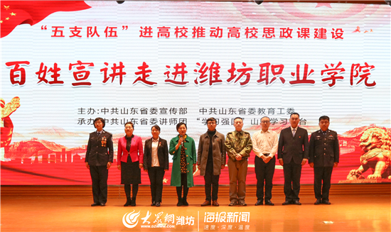 “五支队伍”进高校活动,是深入学习贯彻学校思想政治理论课教师座谈会上重要讲话精神,落实立德树人根本任务,切实用新时代中国特色社会主义思想铸魂育人,进一步推动学校思政课改革和建设的重要举措,由中共山东省委宣传部、中共山东省委教育工委主办,中共山东省委讲师团、“学习强国”山东学习平台承办。