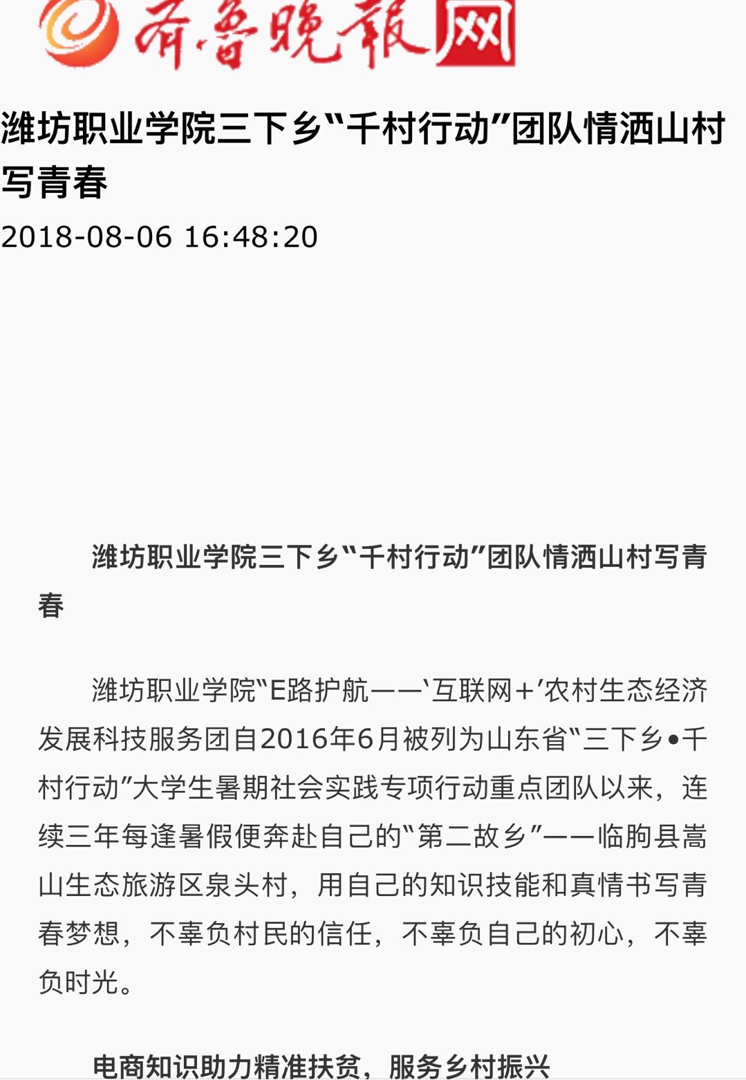 [齐鲁晚报]开云手机平台三下乡“千村行动”团队情洒山村写青春