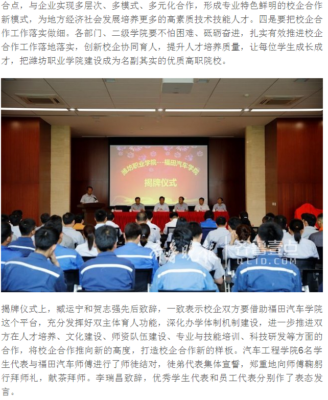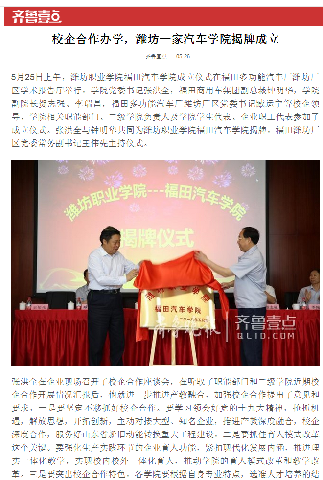[齐鲁壹点]校企合作办学 潍坊一家汽车开云(中国)揭牌成立