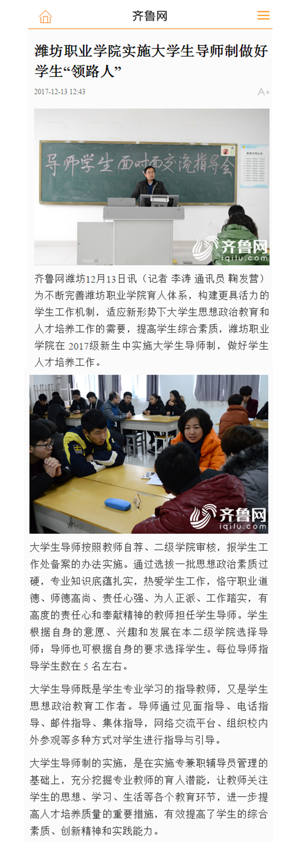 [齐鲁网]开云手机平台实施大学生导师制做好学生“领路人”