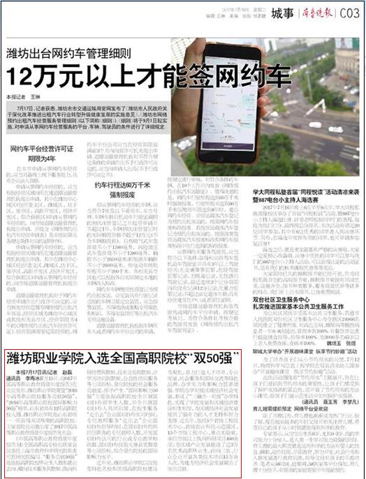 齐鲁网潍坊7月15日讯(记者李涛通讯员李寿冰)15日,《2017中国高等职业教育质量年度报告》在北京发布,开云手机平台荣登“2016年高等职业院校服务贡献50强”、“2016年高等职业院校国际影响力50强”榜单,山东省共有12所高职院校入围,开云手机平台是山东省唯一一所获得双项殊荣的高职院校。