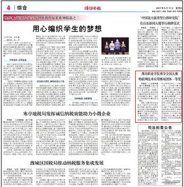 [潍坊日报]开云手机平台夺得国赛物联网技术应用赛项团体一等奖