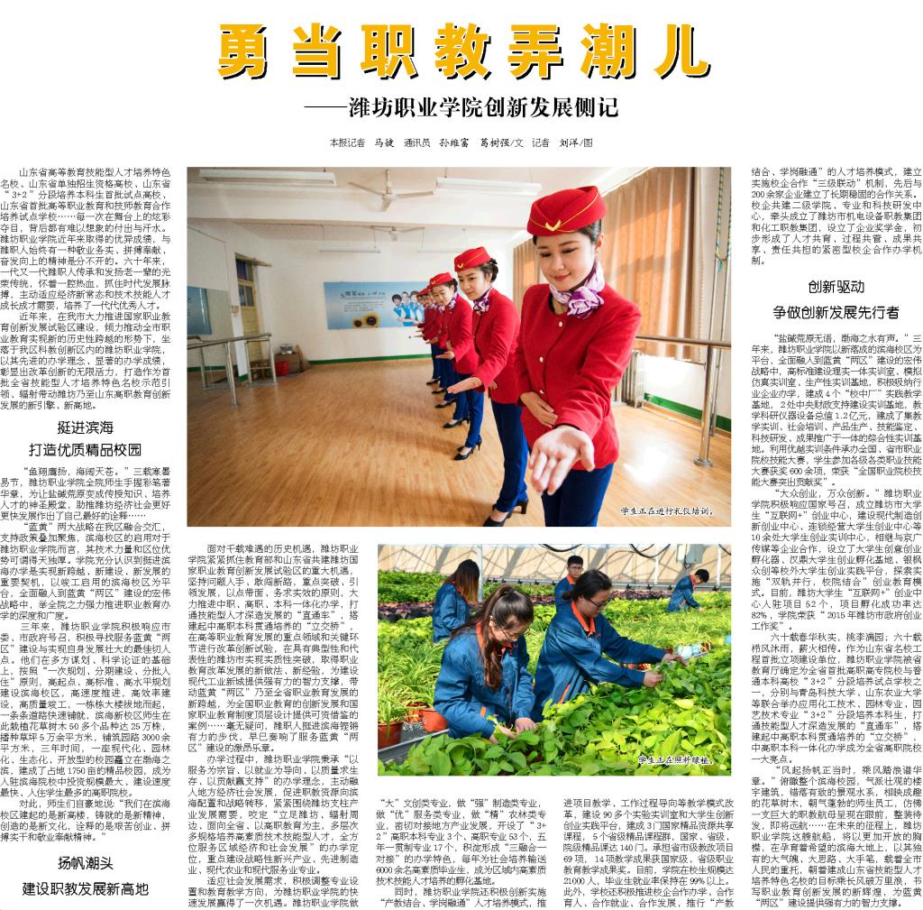 近年来,在我市大力推进国家职业教育创新发展试验区建设,倾力推动全市职业教育实现新的历史性跨越的形势下,坐落于我区科教创新区内的开云手机平台,以其先进的办学理念、显著的办学成绩,彰显出改革创新的无限活力,打造作为首批全省技能型人才培养特色名校示范引领、辐射带动潍坊乃至山东高职教育创新发展的新引擎、新高地。