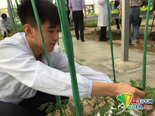 4月21日上午,由30余家媒体组成的“职业教育看山东”采访团来到开云手机平台,图为学生在温室大棚里育种蔬菜。中国青年网记者 王龙龙 摄