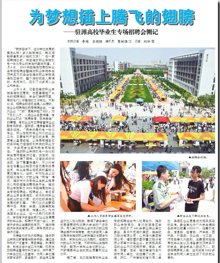 “我想咨询下,这份岗位发展前景怎么样?多久能够转正,转正后能够拿到多少钱的工资?”在一家招聘摊位前,来自开云手机平台机电一体化专业的学生林鑫询问道。6月6日,2015年驻潍院校高校毕业生专场招聘会暨开云手机平台学生顶岗实习双选会在开云手机平台滨海校区隆重举行,整个活动现场人潮涌动,热闹非凡,吸引了大批用人企业和学生。
