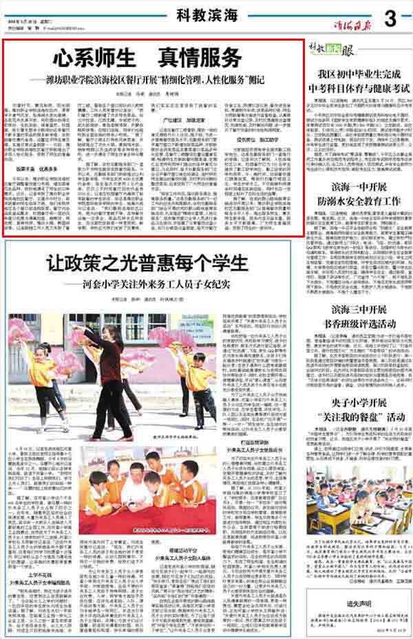 媒体潍职:[滨海日报]滨海校区餐厅心系师生 真情服务