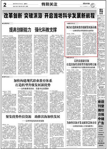 媒体潍职:[潍坊日报] 倾力打造职业教育创新发展新高地