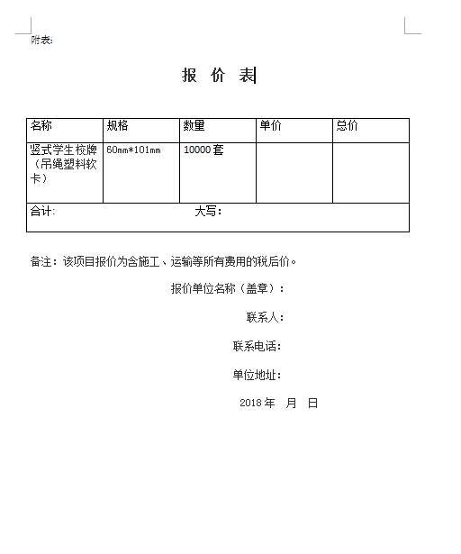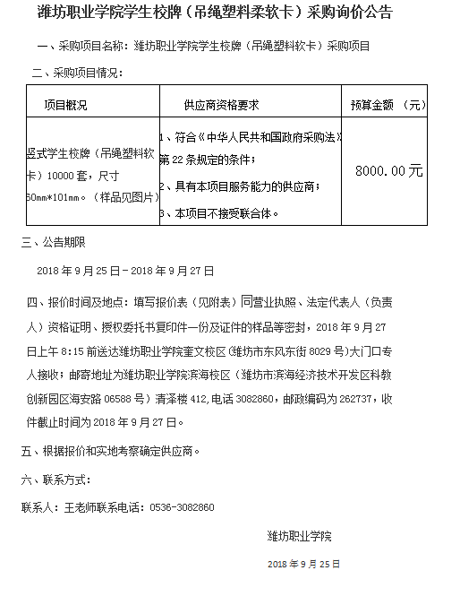 开云手机平台学生校牌(吊绳塑料柔软卡)采购二次询价公告