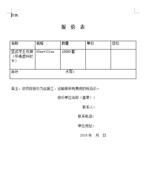 开云手机平台学生校牌(吊绳塑料柔软卡)采购二次询价公告