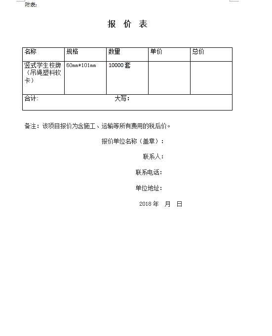 开云手机平台学生校牌(吊绳塑料柔软卡)询价公告