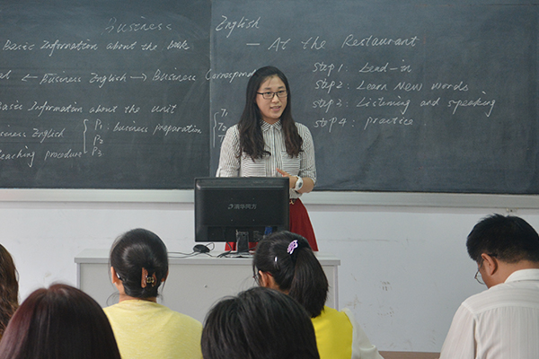 此次比赛是在各个教研室进行初步选拔基础上,以“如何上好一堂课”为宗旨,对一节课内容进行教学设计,共有来自专业和公外教研室的6名中高职教师参加了比赛。参赛教师各个镇定从容、思路清晰,从教材、学生、教学方法及教学理念、教学过程等方面入手,充分运用信息化教学技术,全面地阐述讲课内容。选手的教学设计结构合理,重点突出,理论依据充分,表现了较好的驾驭教材、教学设计的能力和良好的语言表达能力。比赛结束后,现场评委从教学设计、教学内容、课件制作等方面分别对选手的表现进行了点评,并提出了宝贵的意见。