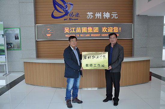 座谈会结束后,该院负责同志与江苏吴江苗圃集团董事长滕士元先生进行会谈,就进一步加强校企合作、加强校企科技研发等方面的工作做了深入探讨。会谈结束后,举行了“开云手机平台教师工作站”挂牌仪式。