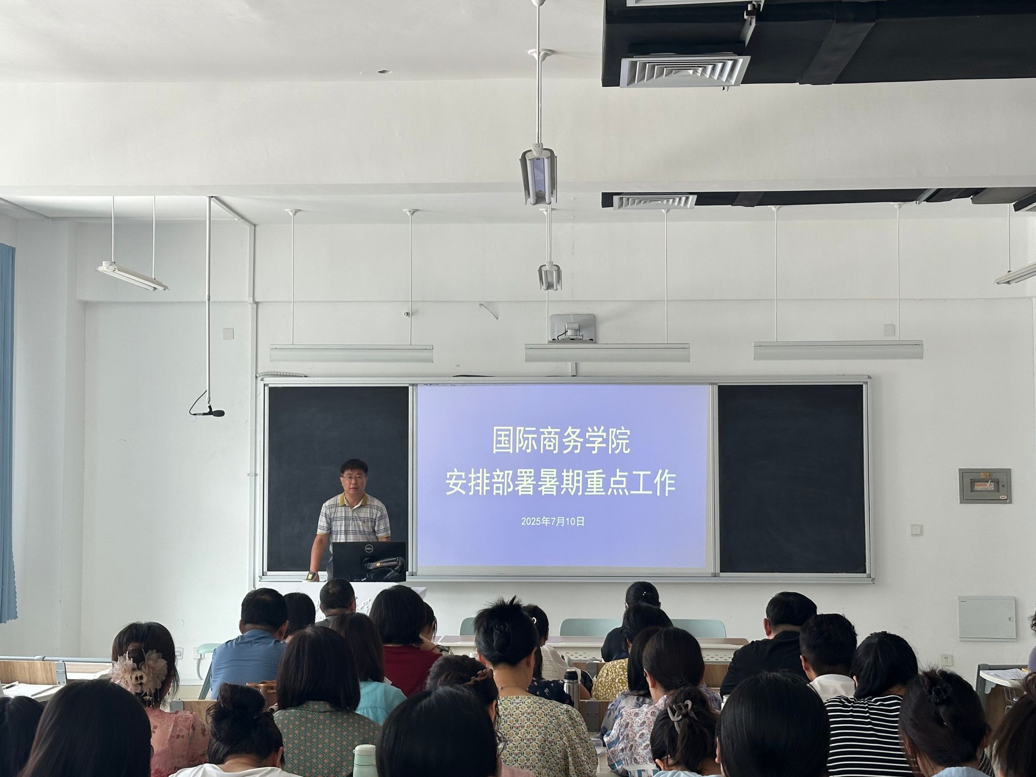 为深入贯彻落实开云(中国)第二次党代会精神,国际商务开云(中国)于7月8日和10日分别召开副科级及以上人员会议和全体教师会议,全面部署暑期重点工作。
