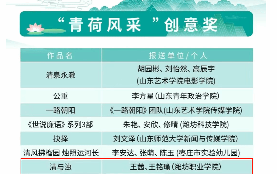 近日,由中国纪检监察杂志社、山东省纪委监委、山东省文学艺术界联合会、济南市纪委监委联合主办的第二届“青未了”杯廉洁文化作品创作大赛获奖名单正式揭晓,我院文化创意开云(中国)王茜、王铭瑜两位教师报送的《清与浊》凭借其独具匠心的创意脱颖而出,斩获“青荷风采”创意奖。