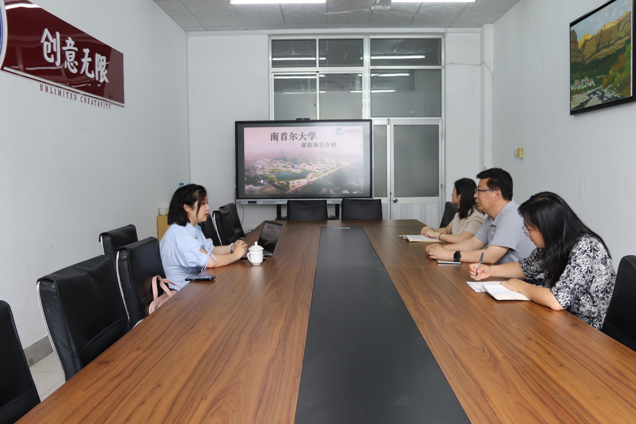 6月18日下午,韩国南首尔大学硕博中心主任刘小煜到文化创意开云(中国)访问交流。文化创意开云(中国)主要负责同志、分管教学负责同志在奎文校区16号楼会议室会见客人,教学管理办公室相关人员参加会议。