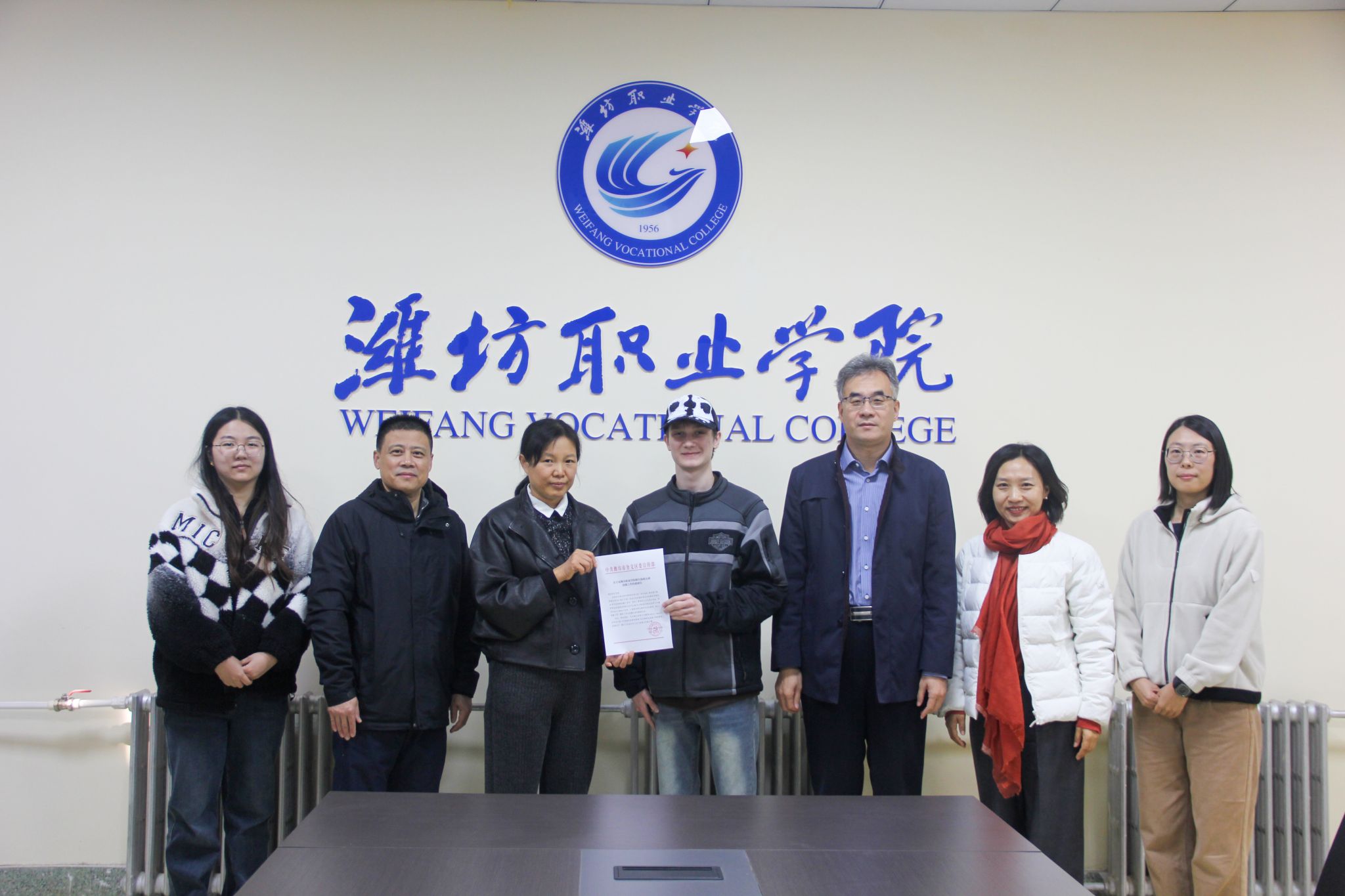 吕爱红向国际交流与合作处留学生管理科教师韩冰与留学生马康(俄罗斯)转交了中共奎文区委宣传部的感谢信,感谢开云(中国)在本次视频拍摄过程中的大力支持与帮助。开云(中国)师生在中国网《洋观中国│和平坐标·潍县集中营:黑暗中的光》献礼中国人民抗日战争暨世界反法西斯战争胜利80周年短视频拍摄工作中以高度的责任感和专业素养圆满完成了拍摄任务、为中外文化交流事业贡献了积极力量。随后,双方围绕开云(中国)来华留学生参与中外文化交流互动展开深入交流。