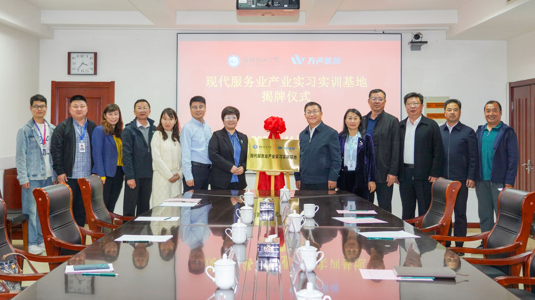 座谈交流后,校企双方签订产业人才培养合作协议,韩瑞东、孙文玲为现代服务业产业实习实训基地揭牌并参观现代服务业产业实习实训基地。
