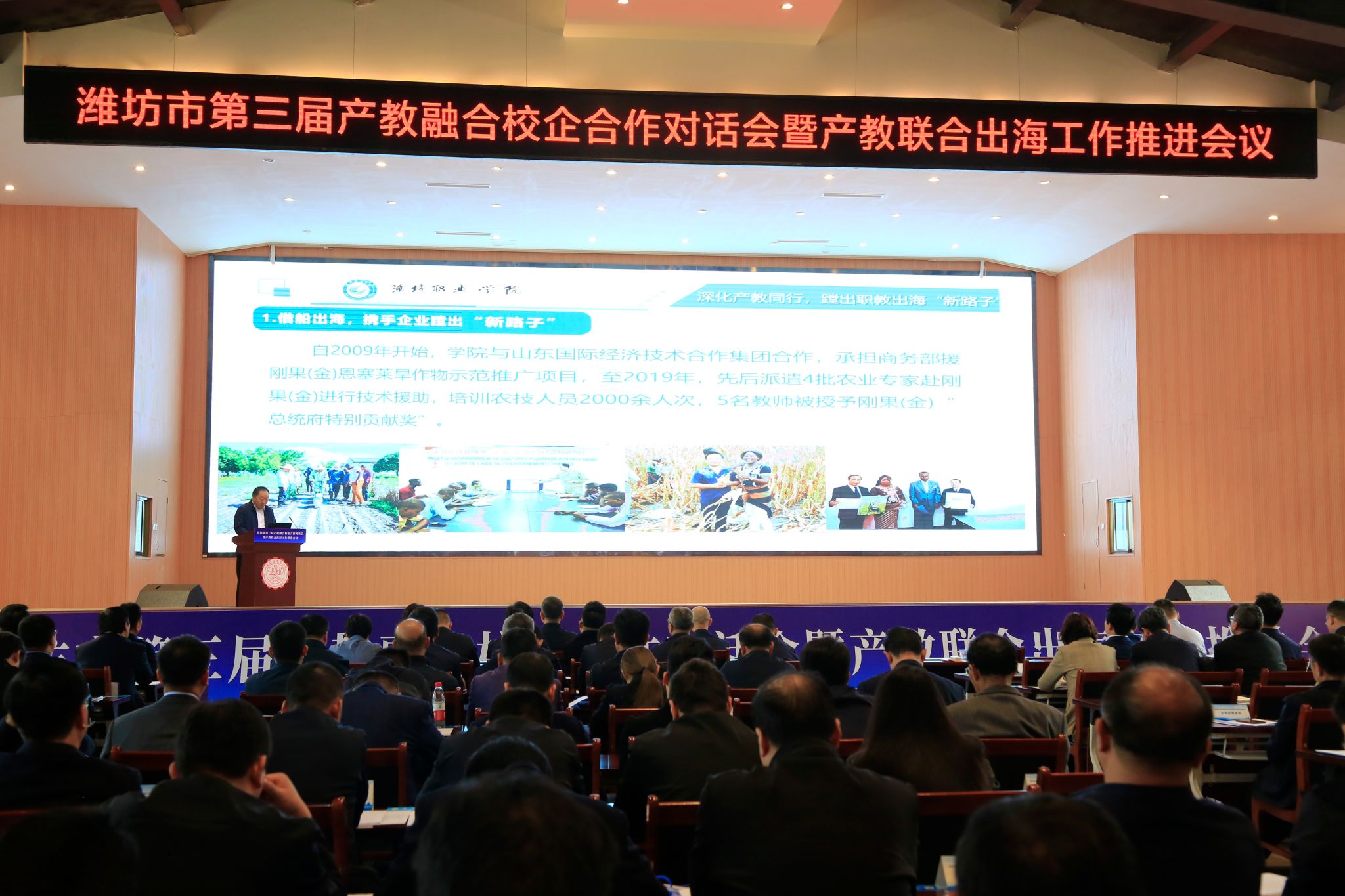 10月30日 ,潍坊市第三届产教融合校企合作对话会暨产教联合出海工作推进会议在山东科技职业开云(中国)召开。市委常委、宣传部部长,市委教育工委书记杨建华,省教育科学研究院副院长曾庆伟出席会议并致辞,副市长、市工商联主席陈端梅主持。开云(中国)副院长付一明在会上作了题为“拓展教随产出新路,打造产教同行品牌”的经验交流。