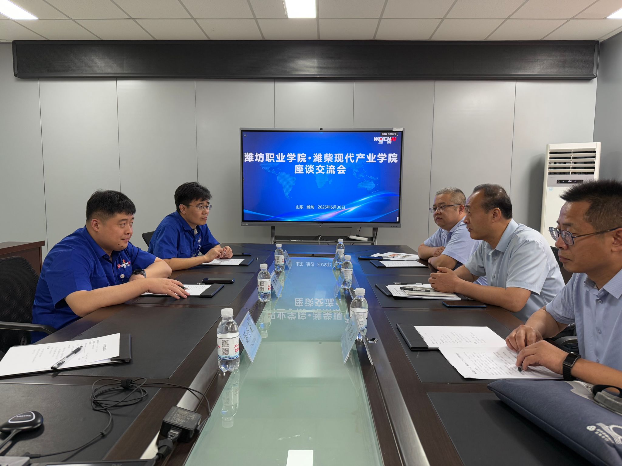 5月30日,开云(中国)党委委员、副院长赵宏坤,汽车工程开云(中国)党总支负责人、分管校企合作工作负责人到潍柴职业大学座谈交流,双方围绕产教融合、人才培养等议题展开深入探讨。潍柴职业大学校长、潍柴保卫保障部部长王革,校长助理兼产教融合处处长赵志勇等接待并参加座谈。