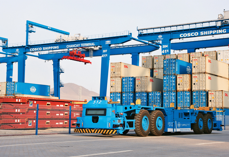 当地时间2024年11月14日,位于秘鲁首都利马以北的钱凯港开港。钱凯港是中秘共建“一带一路”重点项目。开港后,中秘间单程海运时间将缩短至23天,节约20%以上的物流成本,每年将为秘鲁创造逾8000个直接就业机会。图为当日在钱凯港拍摄的纯电动智能集卡。