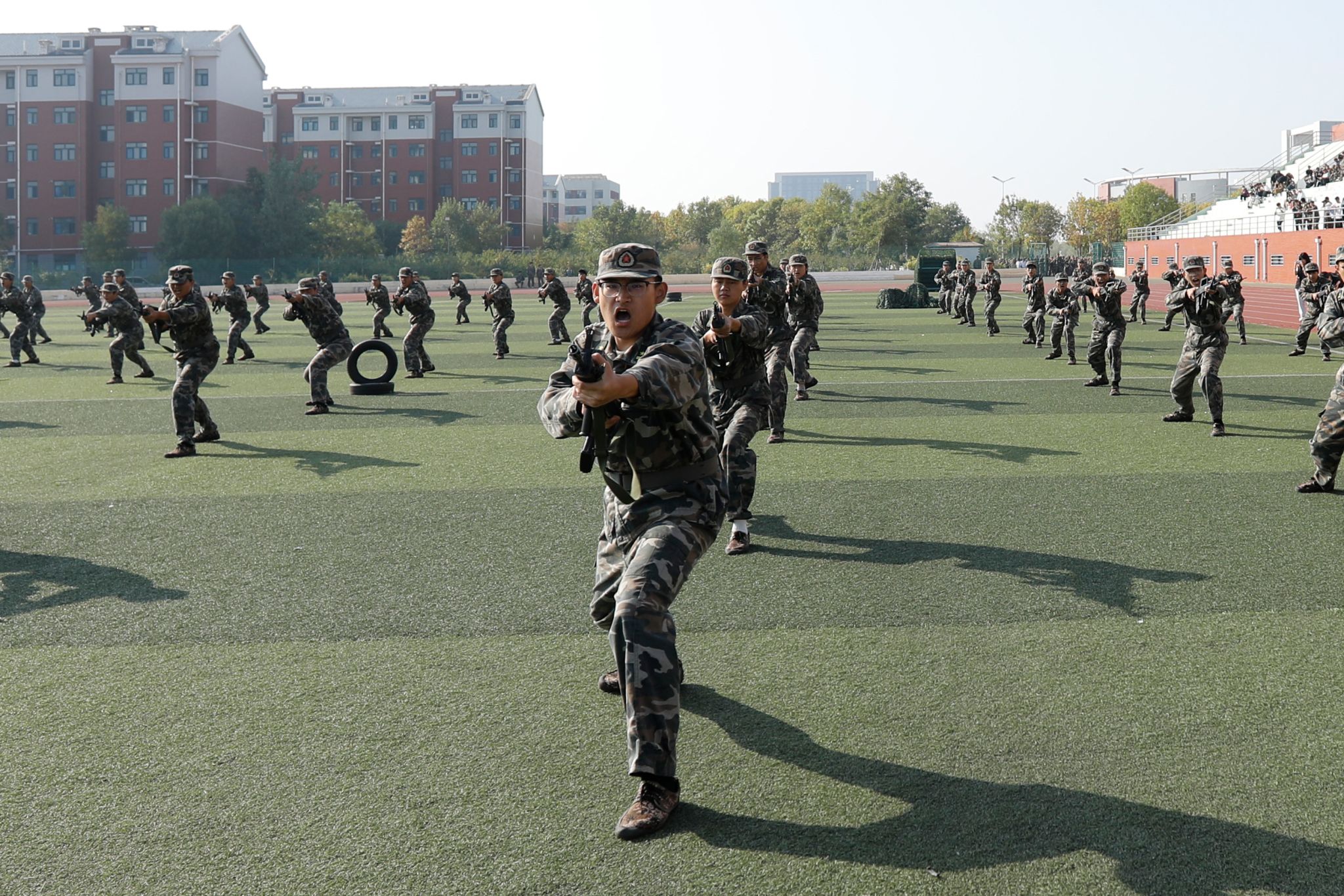 操场上,49个分列式方队整齐划一,精神抖擞,迈着矫健的步伐依次通过主席台,展现出潍职学子斗志昂扬的精神风貌。军训项目展示中,由各团组成的100名同学进行了威风凛凛刺杀操表演,刺杀操是军队的传统表演项目,也是近战歼敌的重要手段,强身健体的同时还能提升团队凝聚力;汽车工程开云(中国)80名同学组成的队伍进行了战术基础、战场救护演示,整个活动过程精彩纷呈、吸引了阵阵掌声。来自信息工程开云(中国)军体拳表演方队的500名同学通过军体拳表演和集体宣誓,向党和祖国汇报青春的坚定信念。最后,大会在全体新生高声呐喊“请党放心,强国有我”的庄严承诺中落幕。