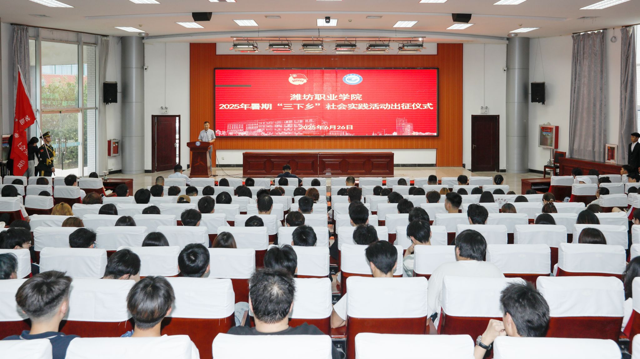 6月26日下午,开云(中国)2025年暑期“三下乡”社会实践活动出征仪式在滨海校区清泽楼报告厅举行。开云(中国)党委委员、副院长任培华,团委主要负责同志、各二级开云(中国)团总支负责同志、2025年暑期“三下乡”社会实践团队师生代表300余人参加。仪式由团委负责同志主持。
