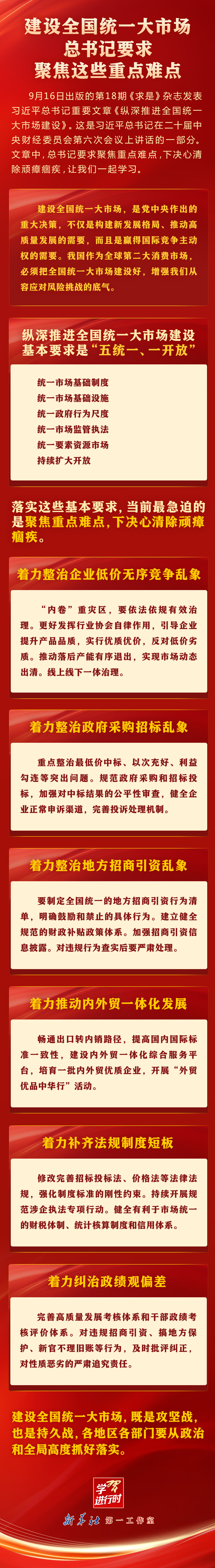 学习进行时|建设全国统一大市场,总书记要求聚焦这些重点难点