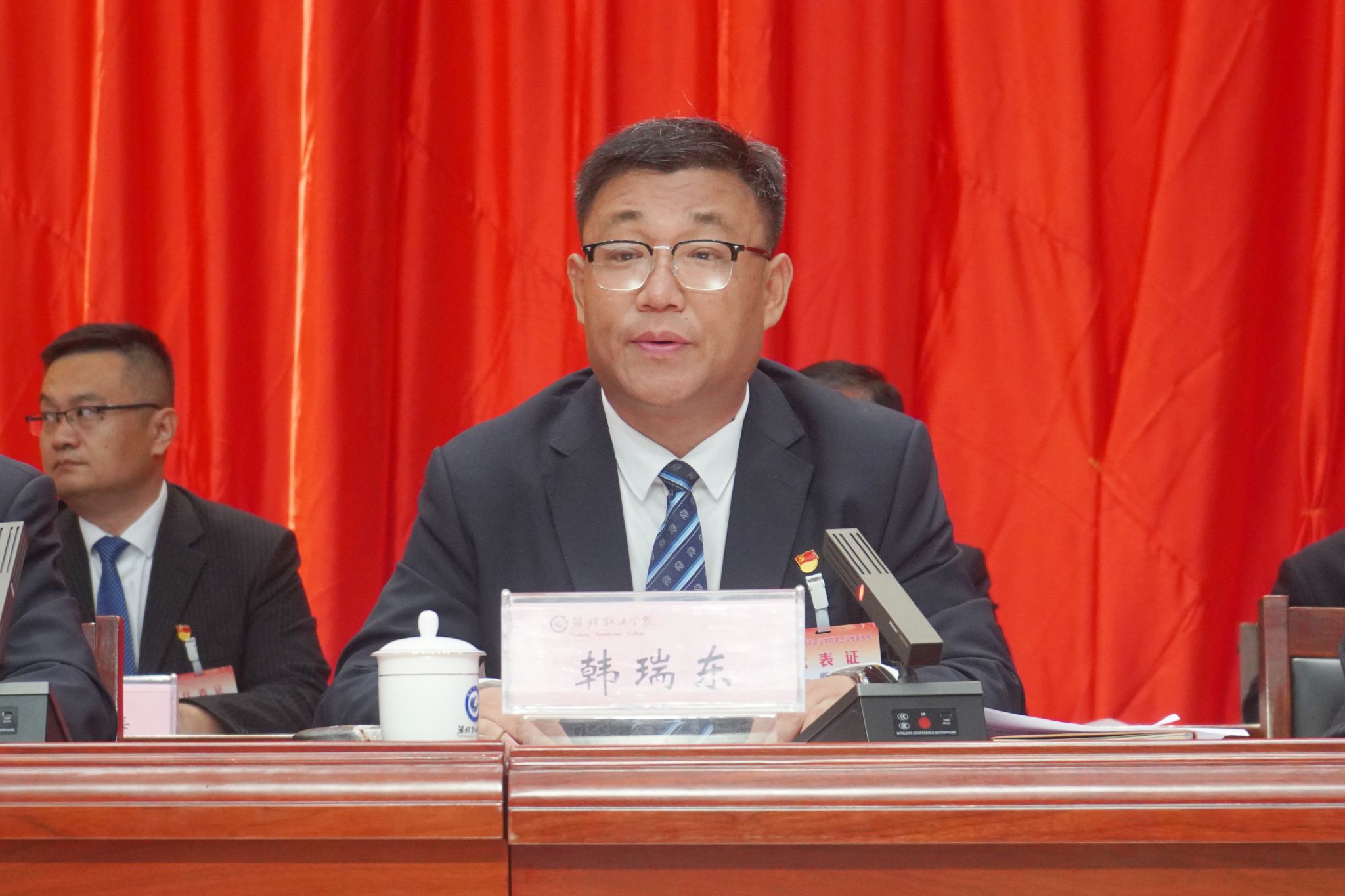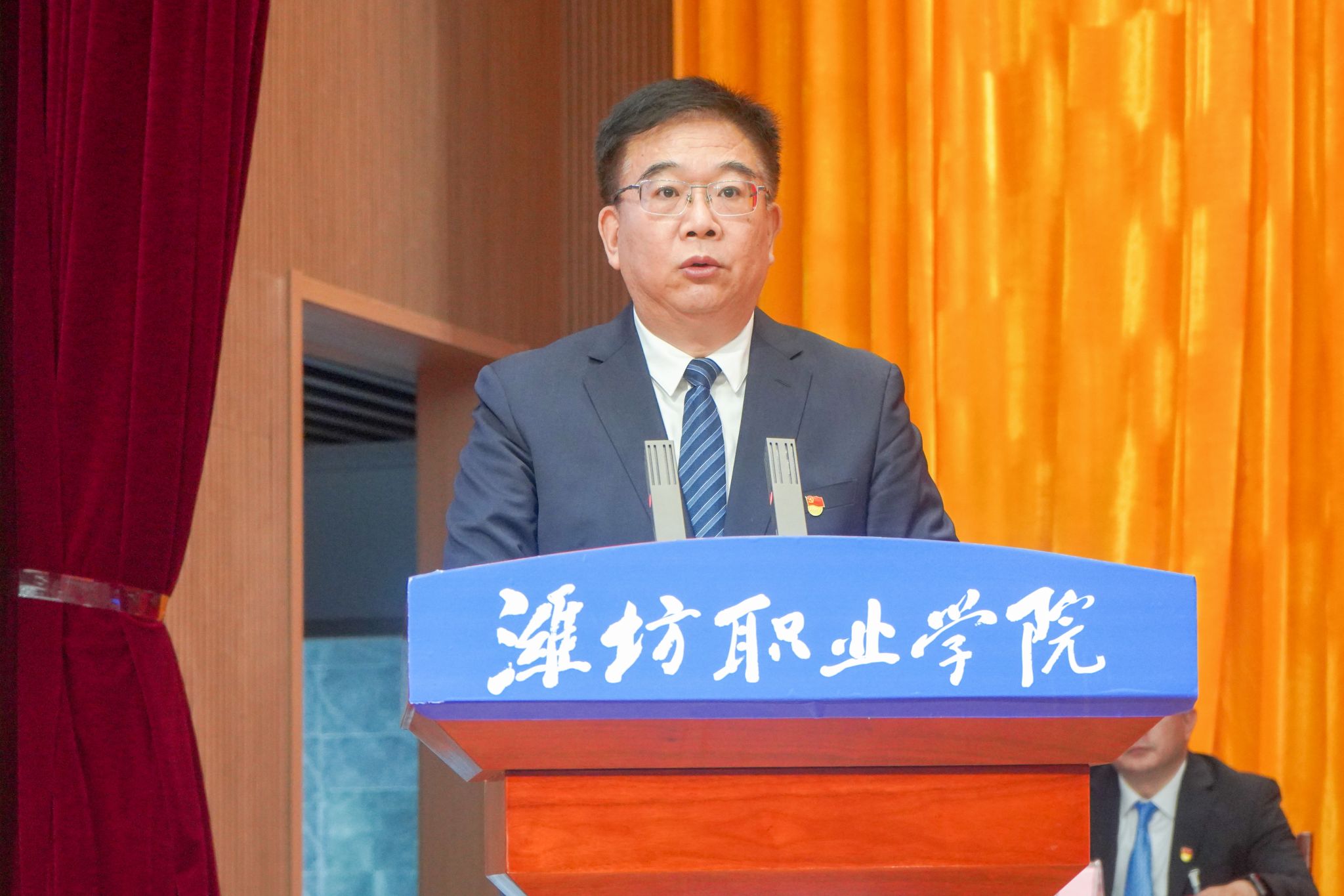 王浩作题为《凝心聚力谱写内涵建设新华章 改革攻坚构建服务发展大格局 为打造高水平专业集群创建高水平职业技术大学而努力奋斗》的报告
